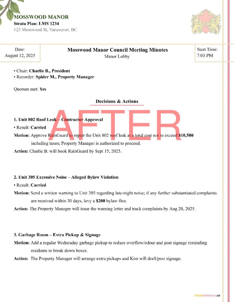 $45/month • Revisions Included • Built for Canadian Strata Use • Minutes Done in Seconds • No Complicated Setup