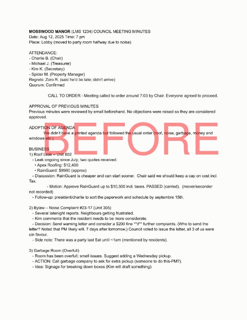 Turn Council Meeting Notes Into Clean, Formal Strata Minutes